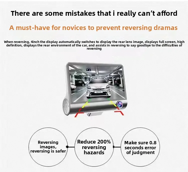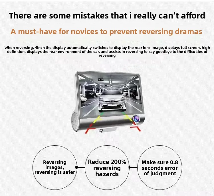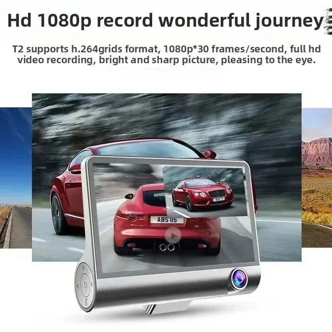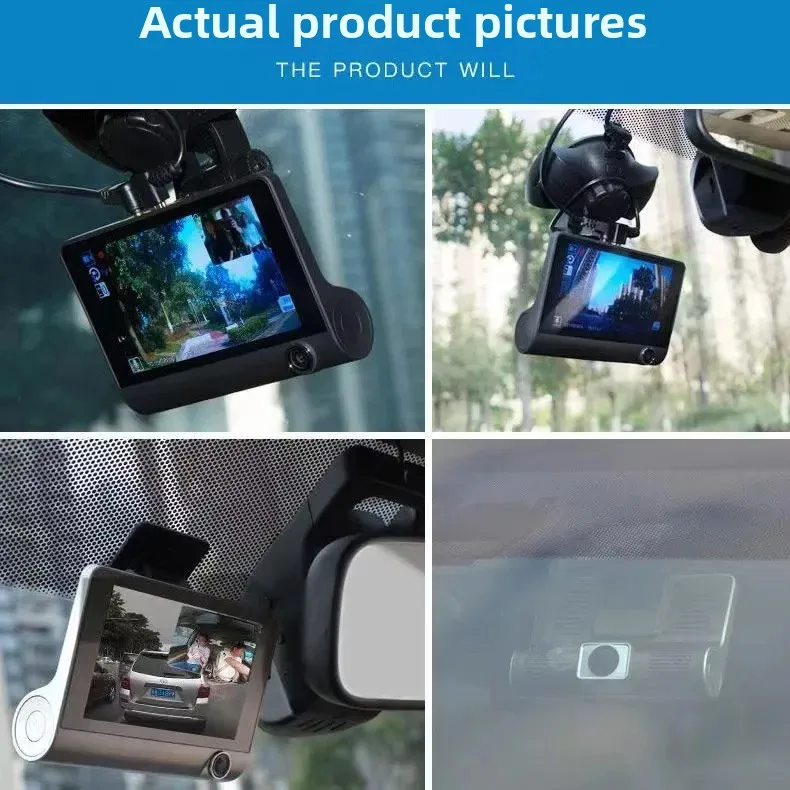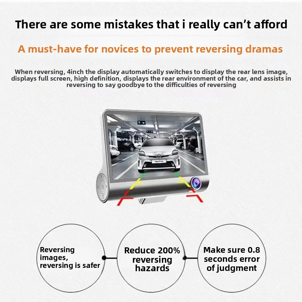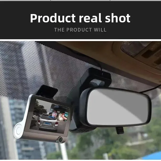Car Dash Cam, 4" with Night Vision, 1080 HD DVR 3 Lenses, Front & Rear Cam
