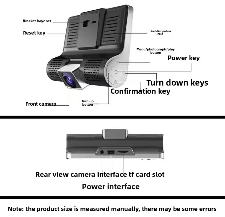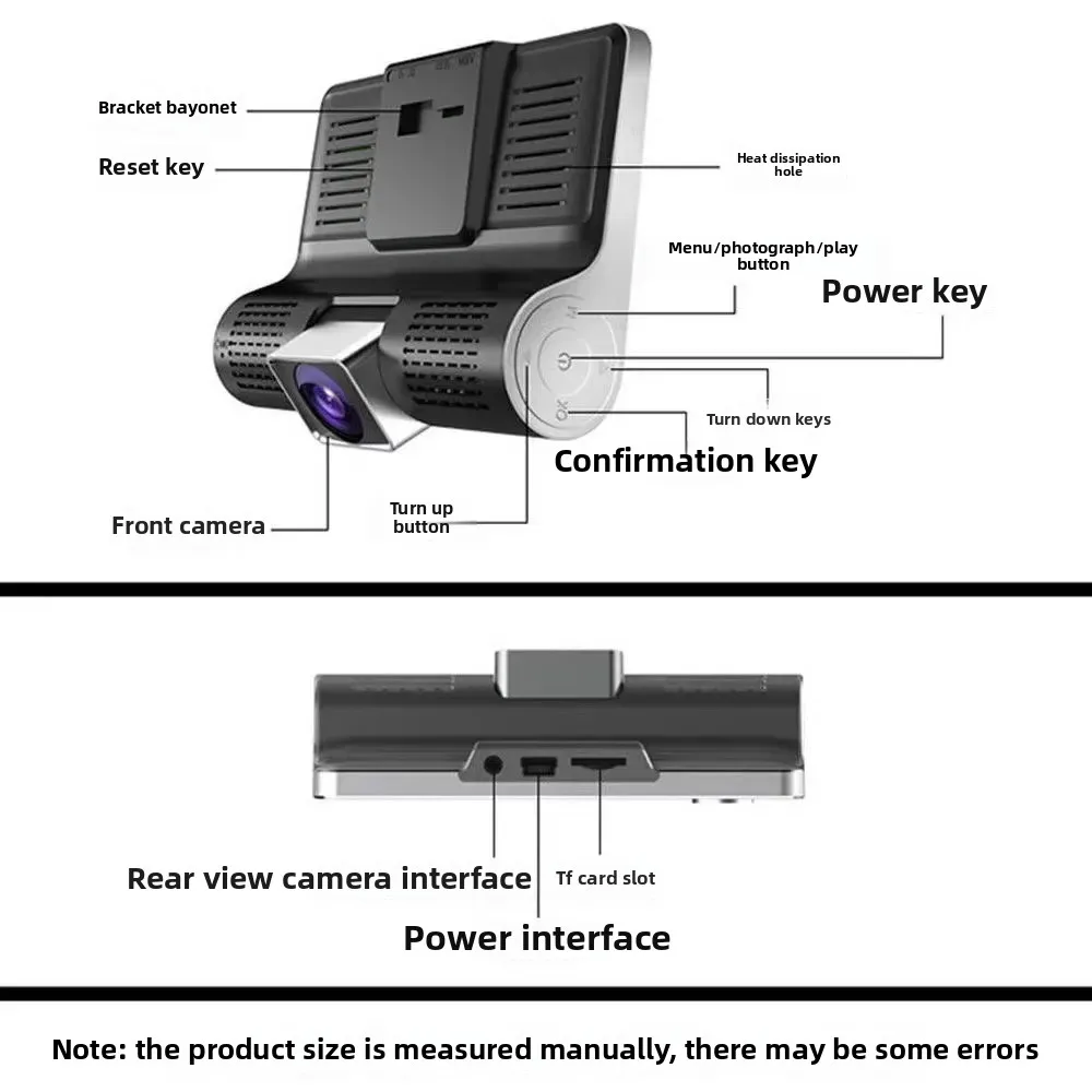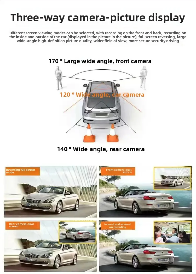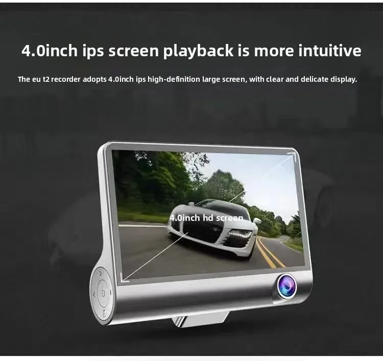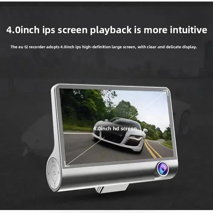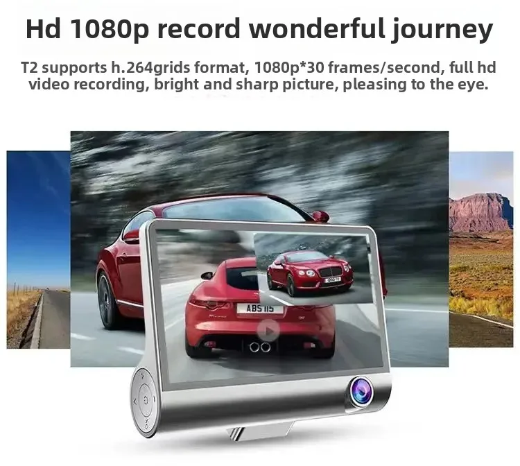 Car Dash Cam, 4" with Night Vision, 1080 HD DVR 3 Lenses, Front & Rear Cam