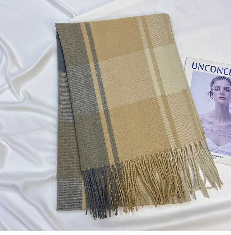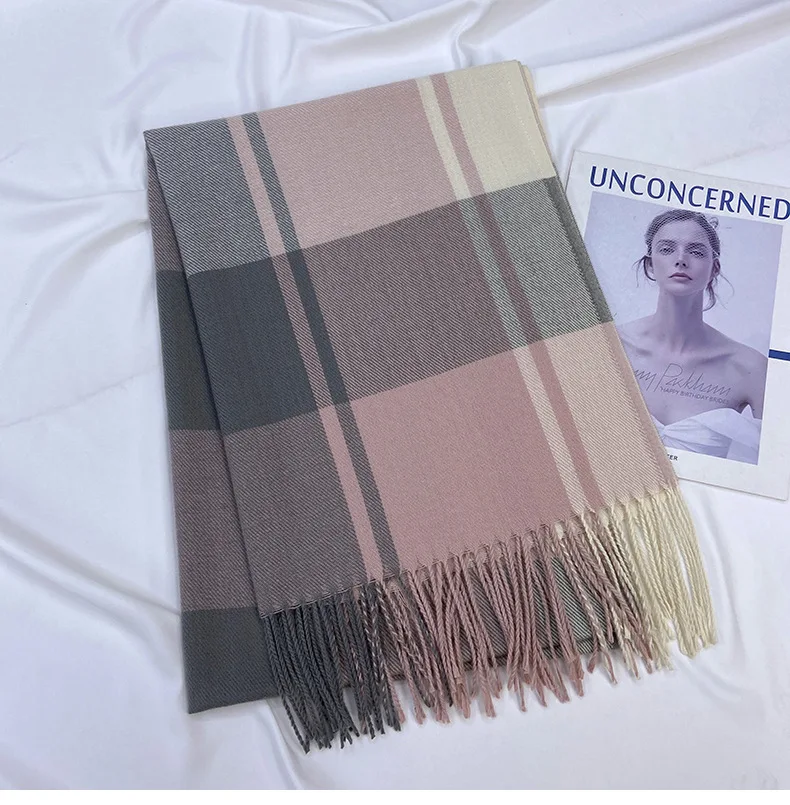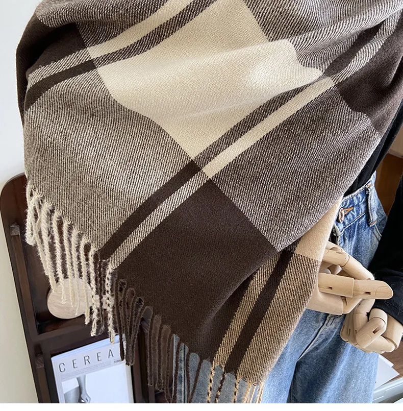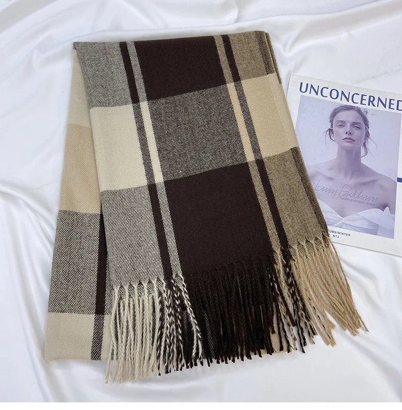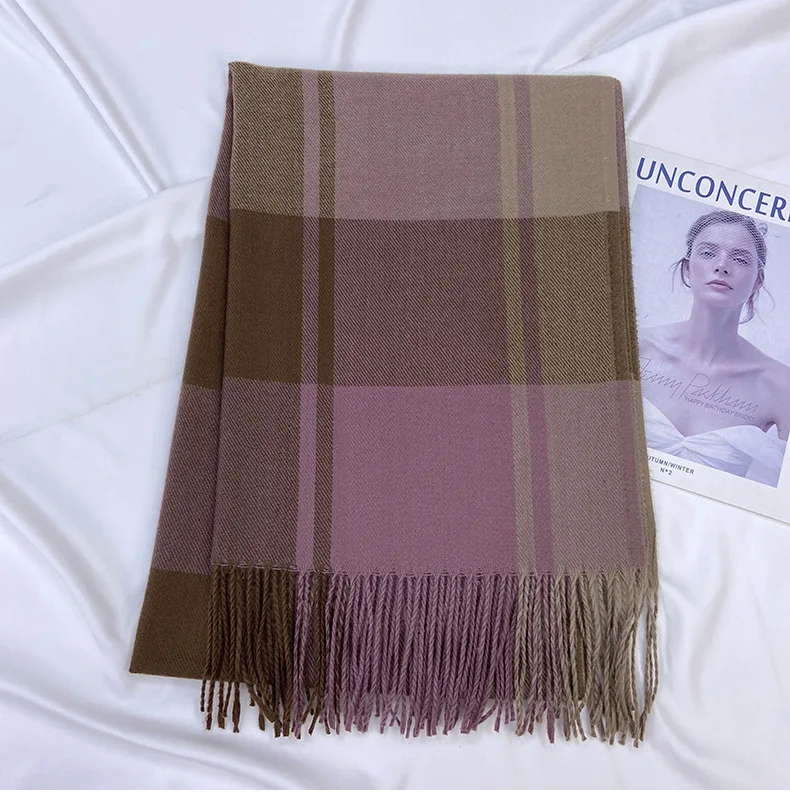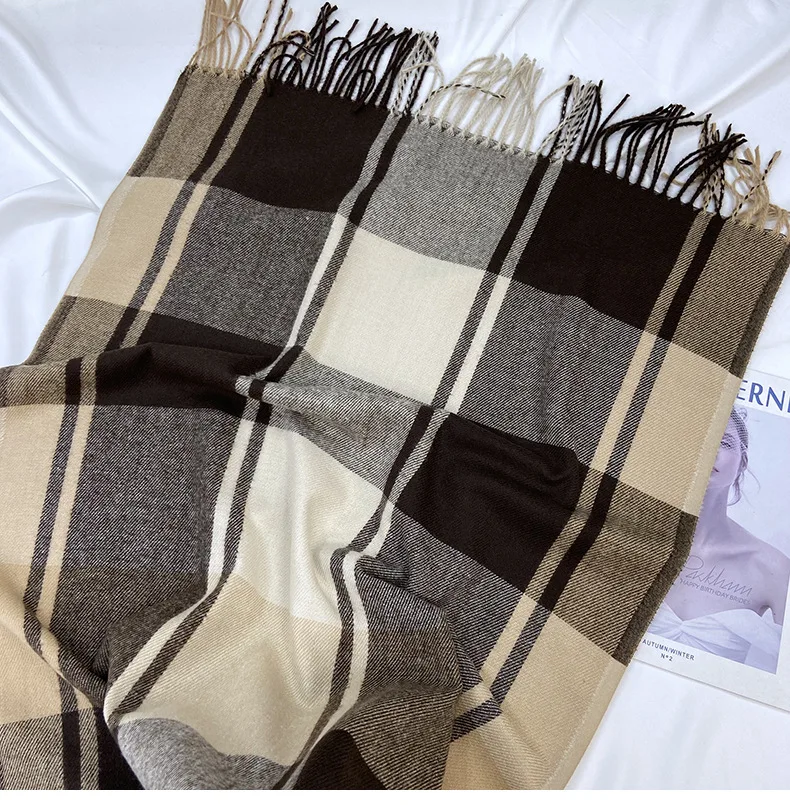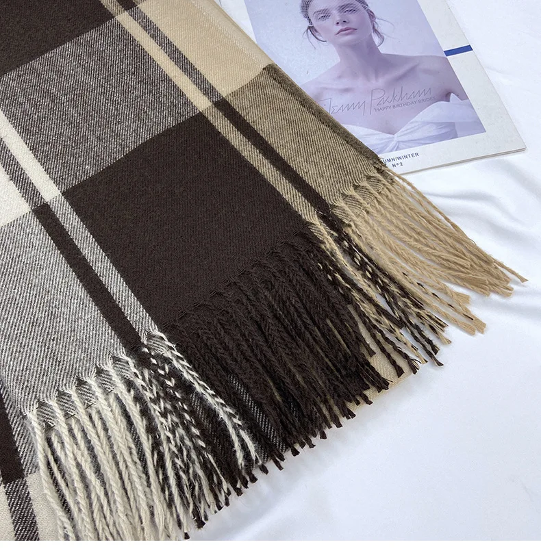 Cozy Plaid Scarf Shawl, Soft Imitation Cashmere, Colour Block Design