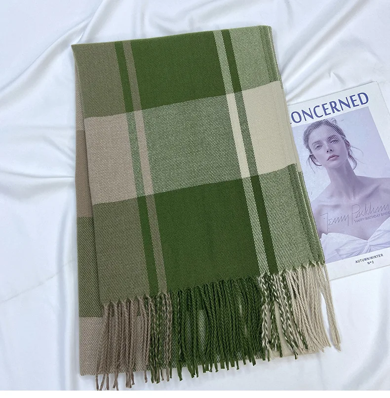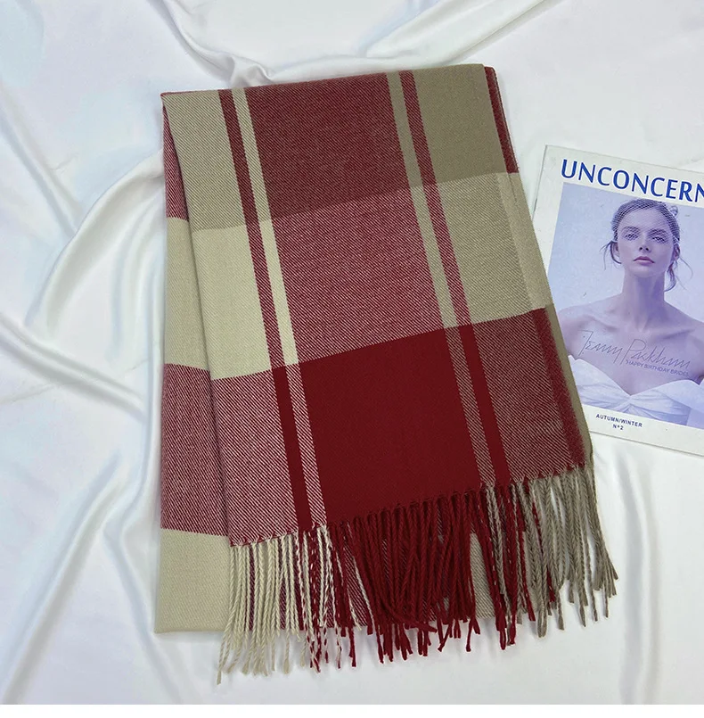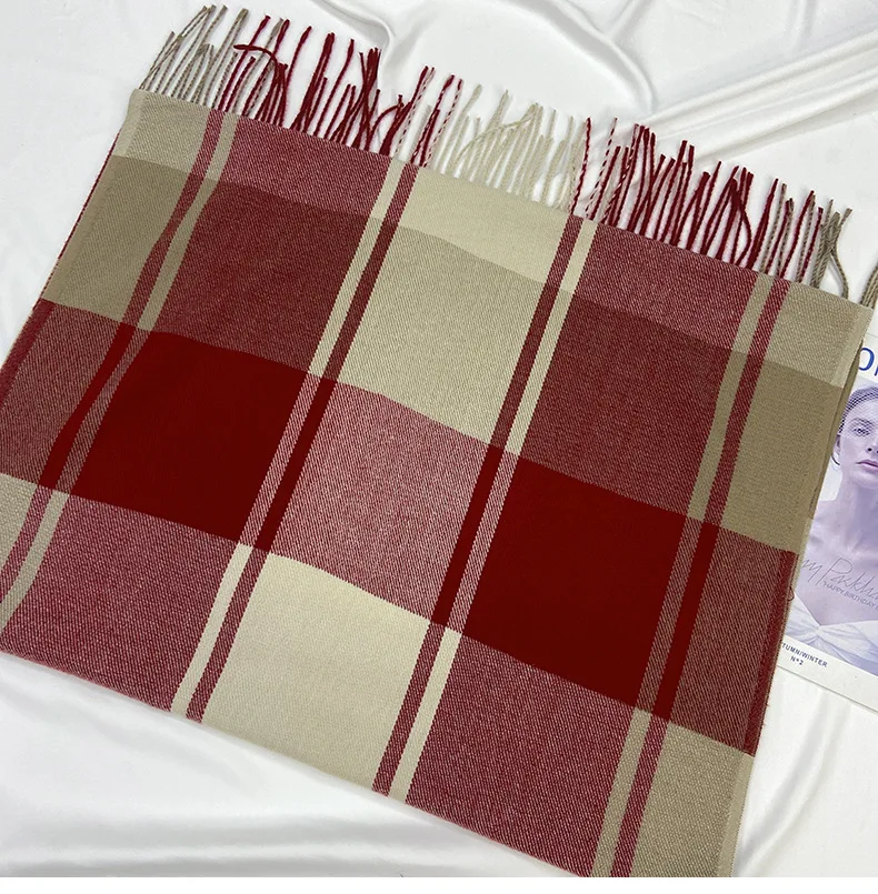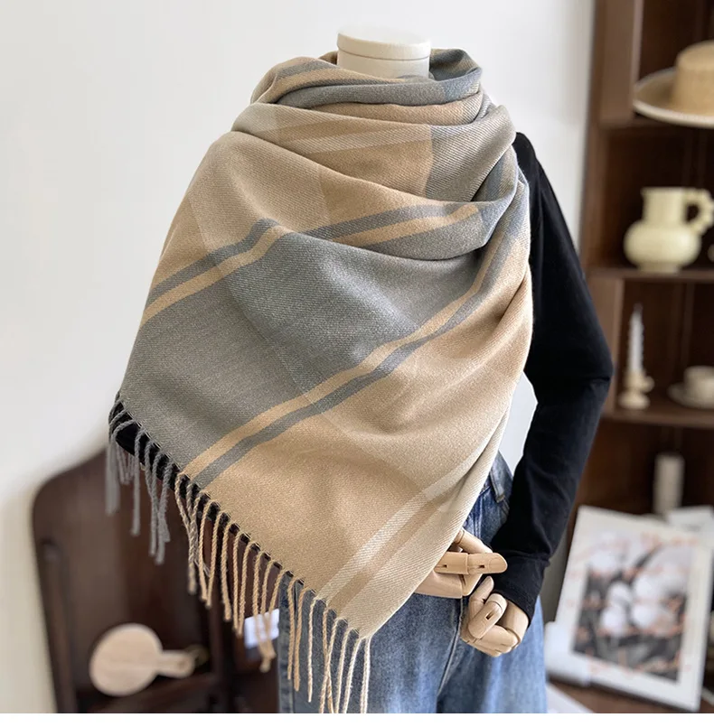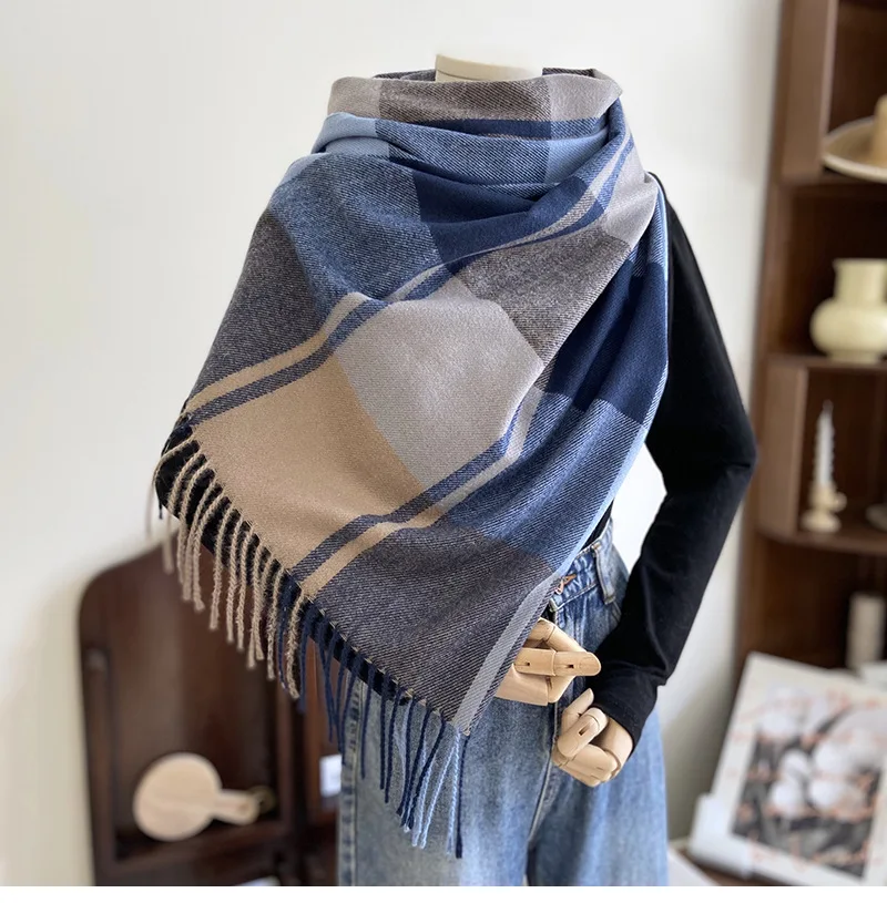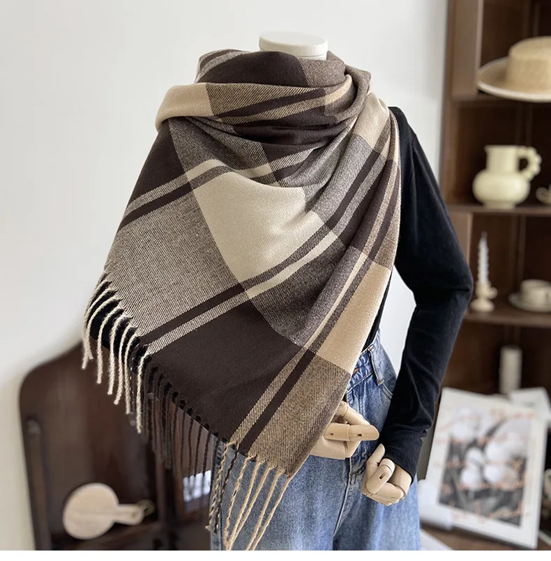 Cozy Plaid Scarf Shawl, Soft Imitation Cashmere, Colour Block Design