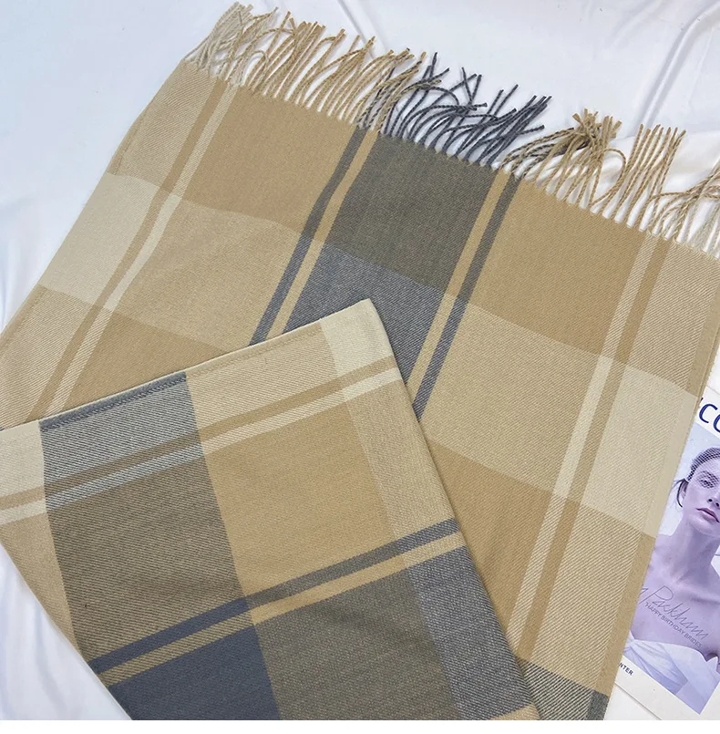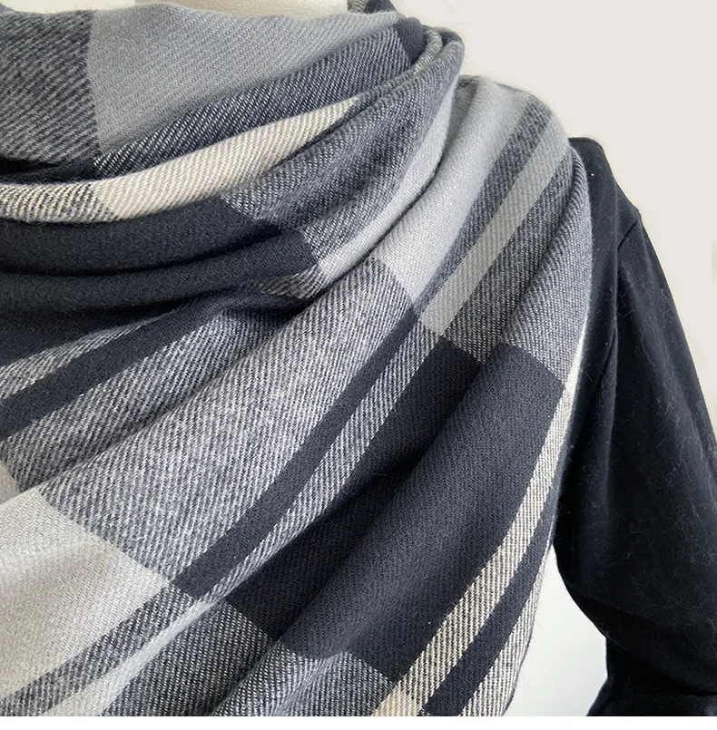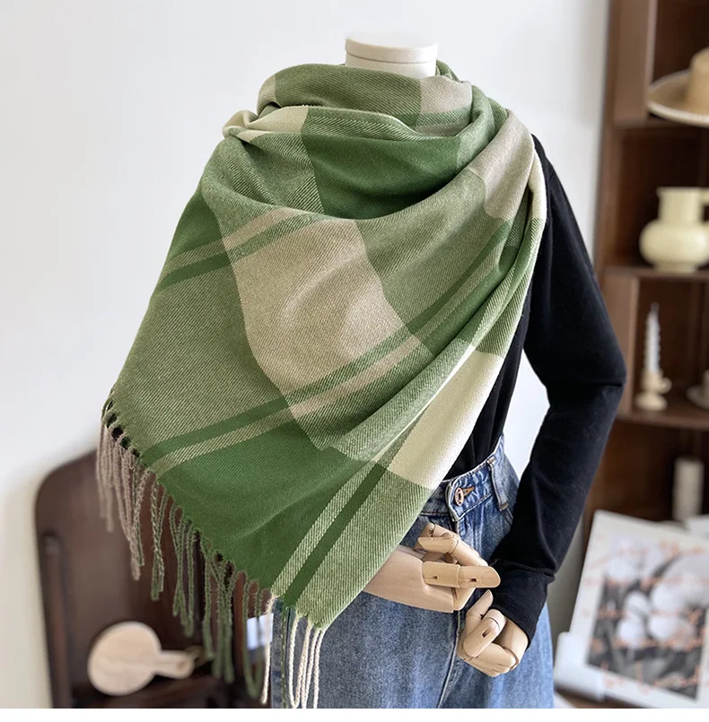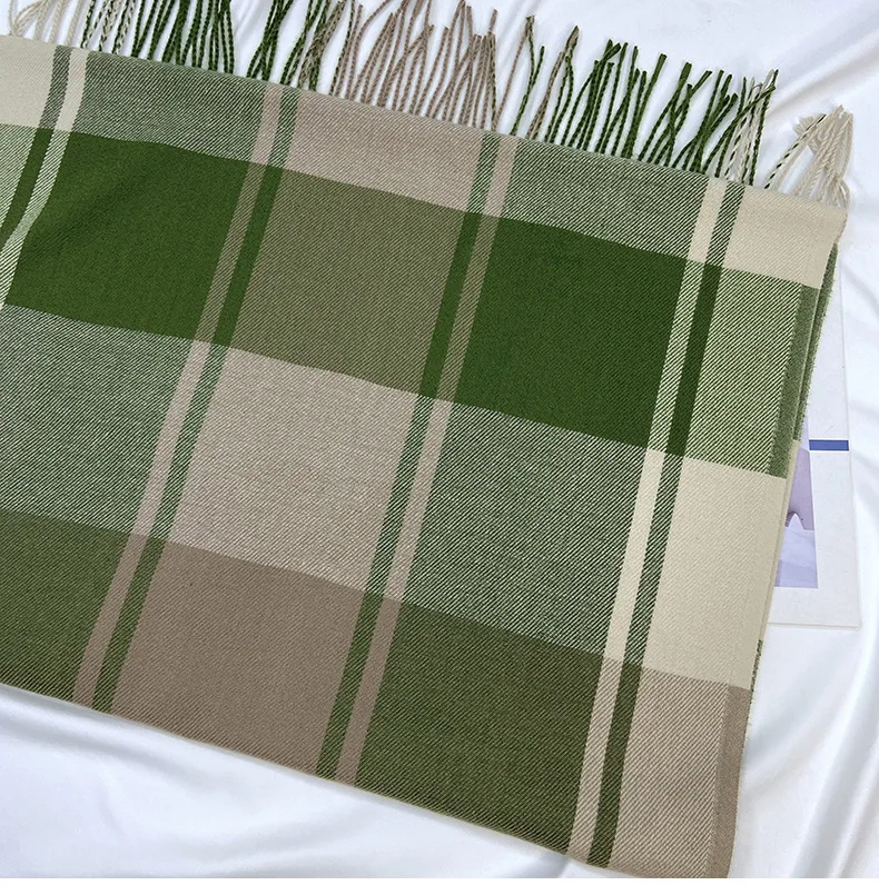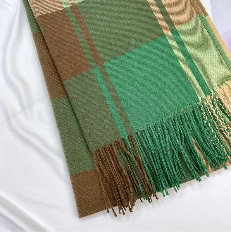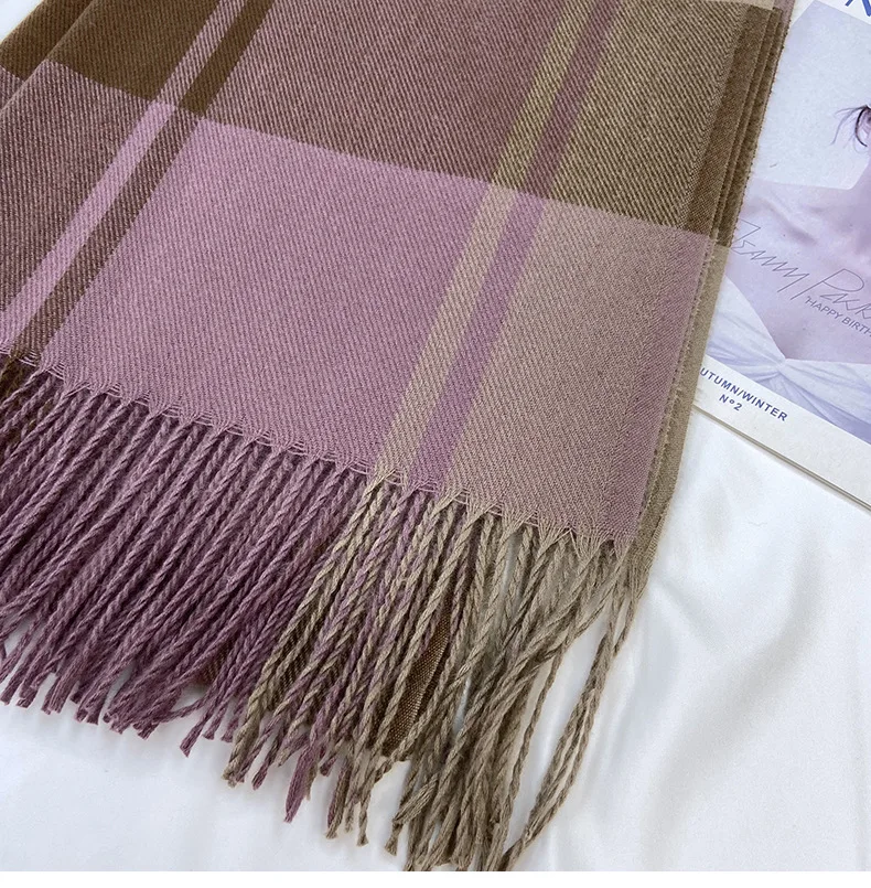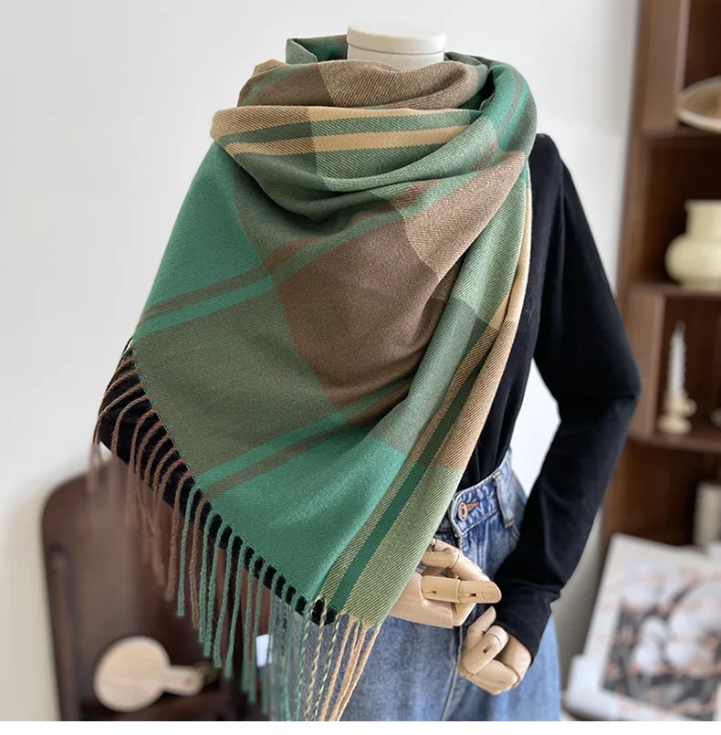 Cozy Plaid Scarf Shawl, Soft Imitation Cashmere, Colour Block Design