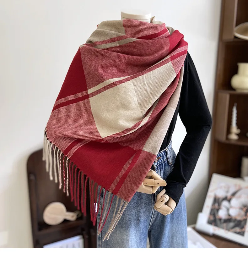 ✨ What is it – Discover ultimate warmth and style with our Cozy Plaid Scarf Shawl, crafted from soft imitation cashmere and featuring a chic colour block design. Perfectly sized at 200cm x 65cm, this scarf adds a touch of elegance while keeping you snug during those chilly autumn and winter days.