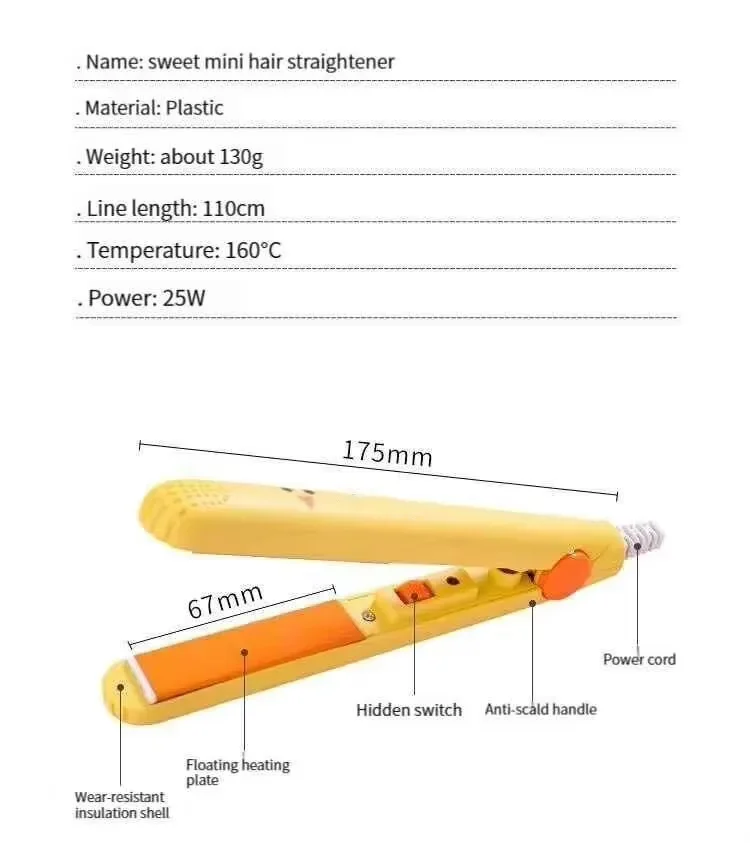 Mini Hair Straightener Clipboard Small Power Plug Curling Hair Straight Hair Girls Air Bangs Portable Hair Straightener