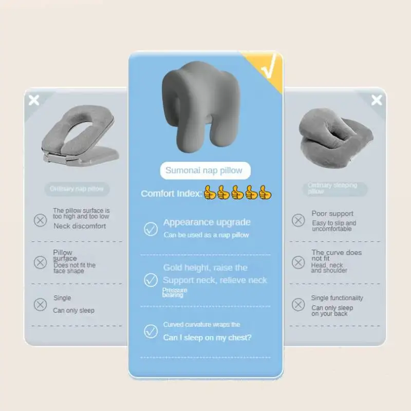 【Comfortable Memory Foam】: Napping Pillow filled with soft memory foam that supports and conforms closely to the neck's curve, allowing you to lean back comfortably while its breathable design ensures you will not feel suffocated when lying face down
