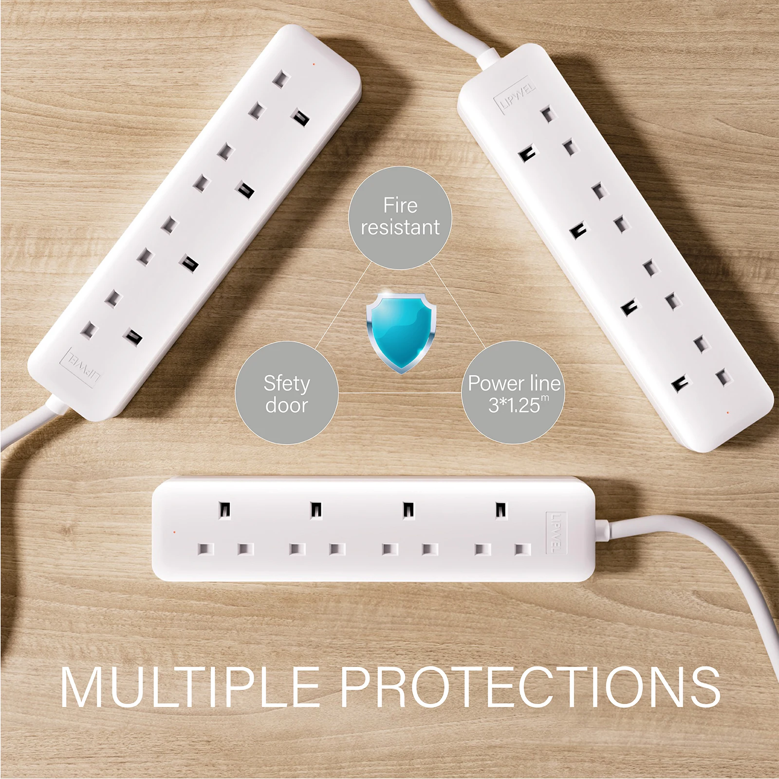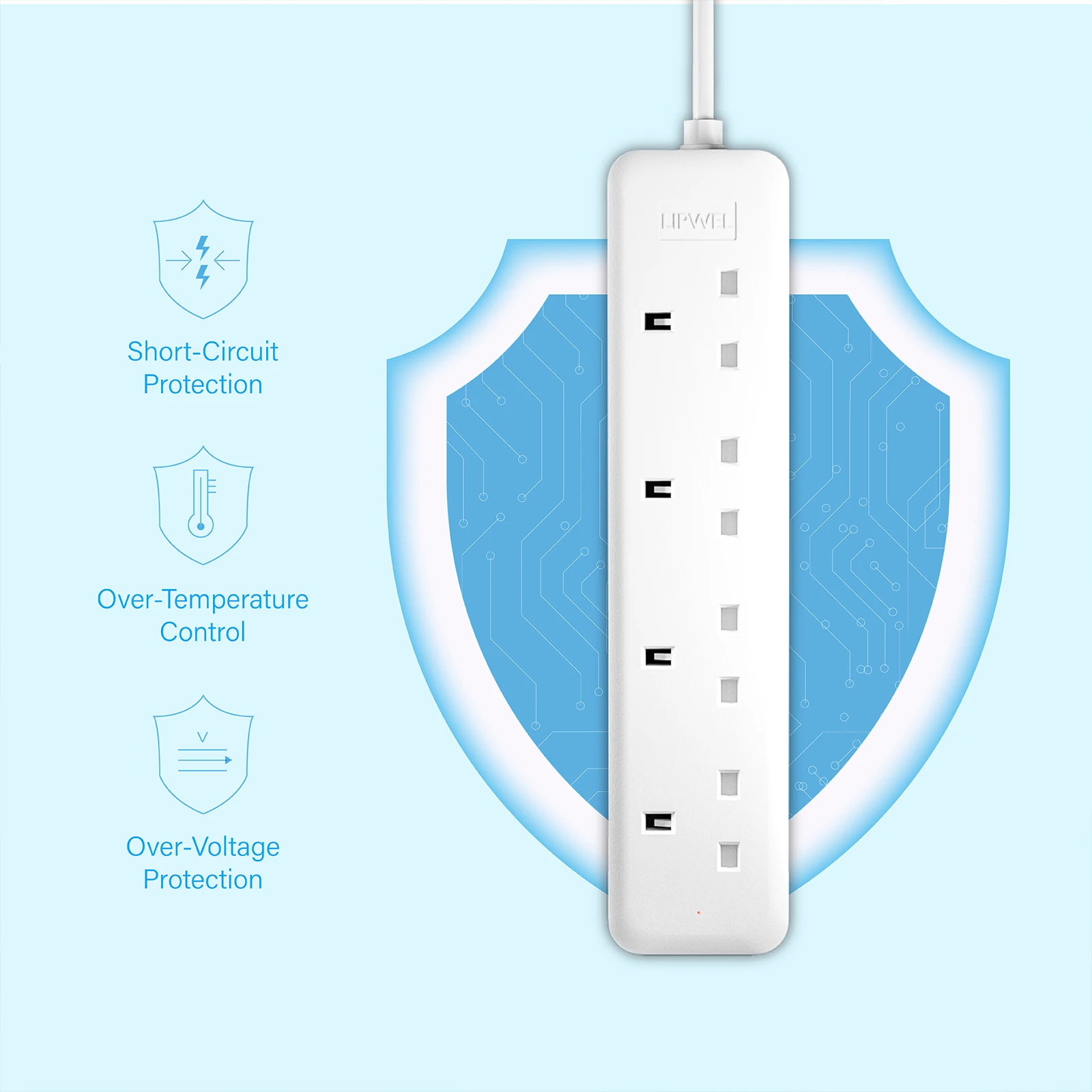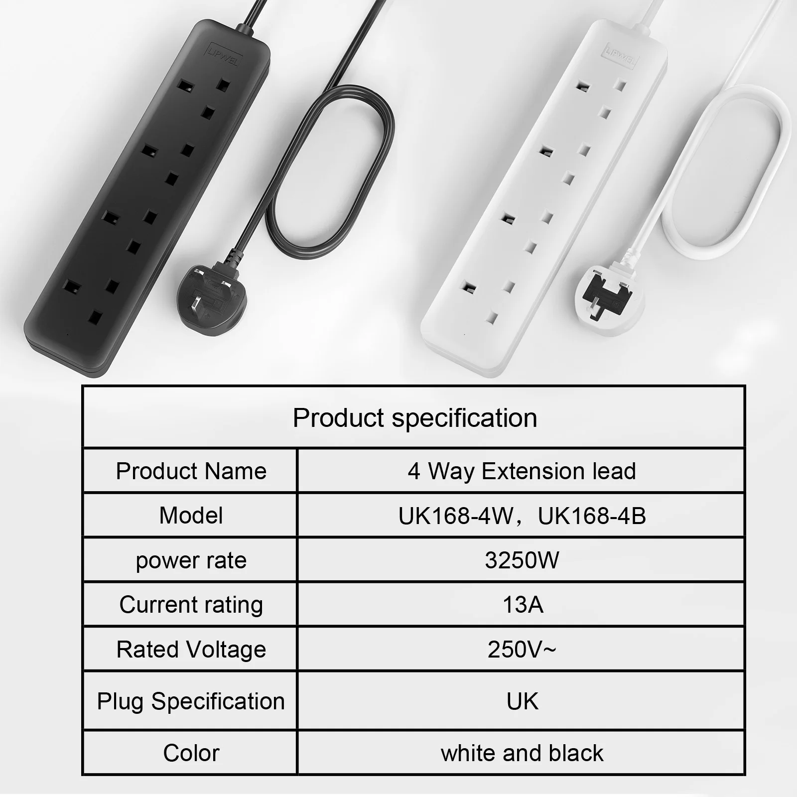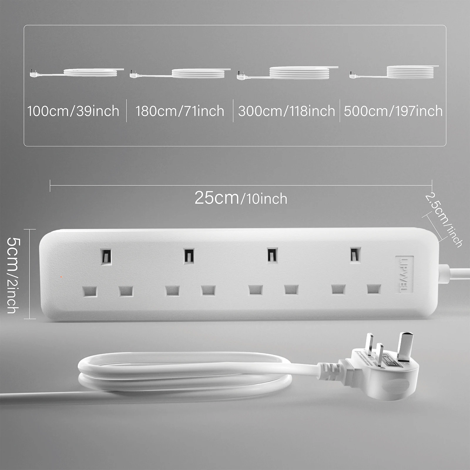 Extension Sockets, UK Wall Mount Plug with 4 AC Outlets, 3250W